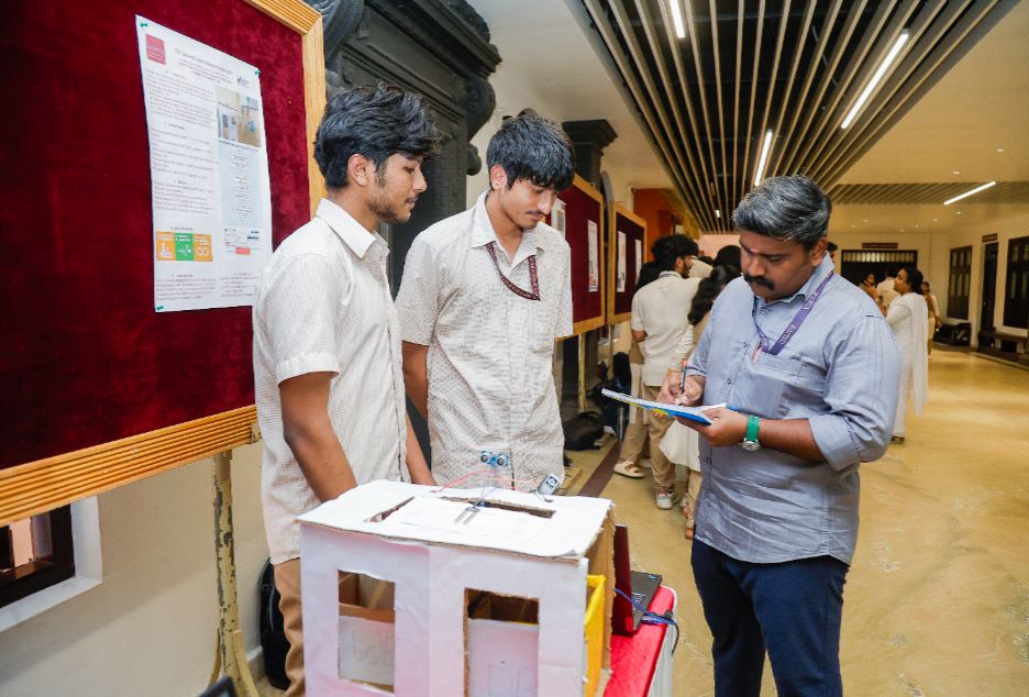 The Department of Electrical and Electronics Engineering, Amrita School of Engineering, Amritapuri Campus in collaboration with the Institution’s Innovation Council (IIC ) and Amrita School of Computing, Amritapuri, successfully hosted the Project Expo and Poster Presentation on “ The Triple Nexus: Powering SDGs with AI & Cyber Resilience ” on 5th December 2025 at the University Main building.