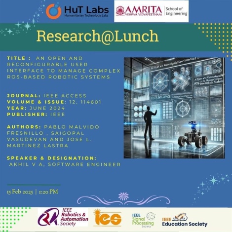 A research webinar series organized by HuT Labs (exclusively for PhD scholars, UG and PG researchers in India) on the topic “Robot Slam with Ad-Hoc Wireless Network Adapted to Search and Rescue Environments” on November 20, 2021.