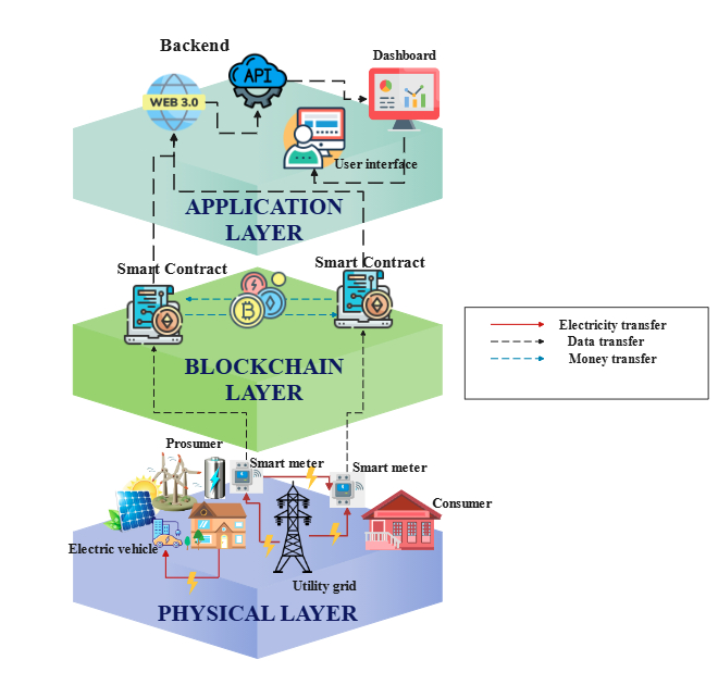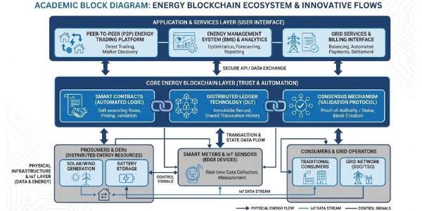 Decentralized Transactive Energy: Architecting transparent Peer-to-Peer (P2P) trading platforms using blockchain and smart contracts. Research delves into auction-based trading mechanisms, prosumer welfare optimization, and the development of Decentralized Applications (DApps) for automated energy settlements.