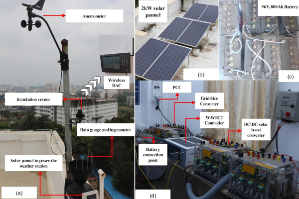 Precision Weather Monitoring Station – VANTAGE PRO2 – A high-resolution environmental sensing suite equipped with a wireless Data Acquisition DAC unit. It includes an anemometer, solar irradiation sensor, rain gauge, and hygrometer to feed real-time local data into AI-driven demand and generation forecasting models.