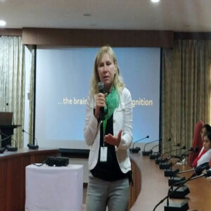 One focus of the seminar addressed the instructional design methods to optimize the value of working memory capacity and to avoid cognitive overload. Dr. Miriam explained how educational neuroscience offers innovative processes and methodologies to analyze cognitive load based on physiological measures. Observing psychophysiological changes when they occur in response to the course of a learning session allows adjustments in the learning session based on the individual learner’s capabilities. In other words these methods can help to identify the particular needs of different students, thus matching the form and style of teaching with the capacity of the learner. One relatively easy measure of a learner’s physiological changes during a learning task is through the easily available non-invasive electroencephalogram (EEG)-based devices. This device is used with advanced near-real-time analysis techniques to improve our understanding of the underlying mechanisms of learning. She said this can impact the way instructional methods are designed, and it can also enable them to change according to the learner’s cognitive load and valence states.