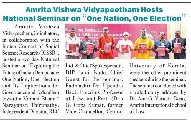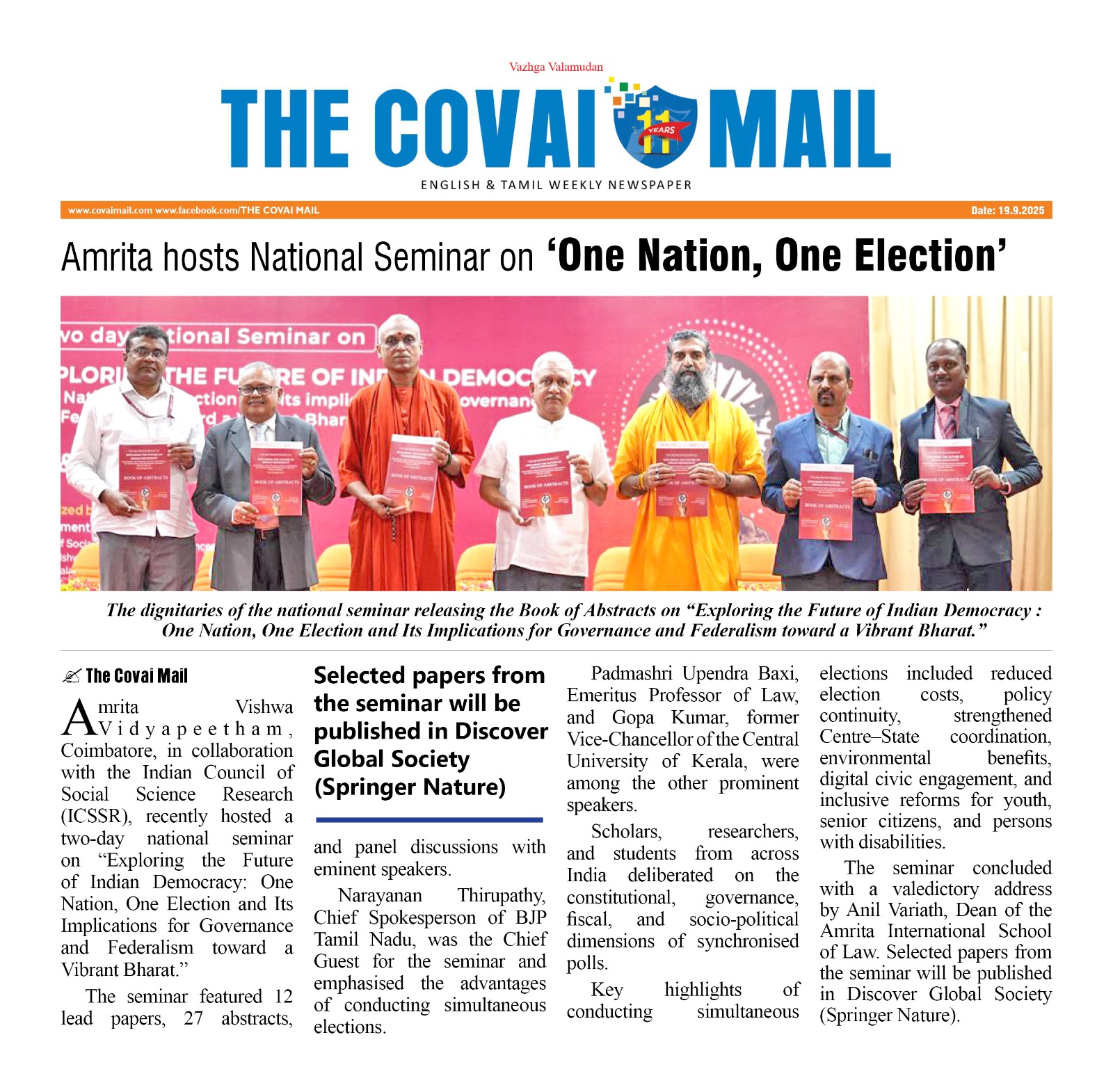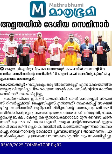Amrita Vishwa Vidyapeetham, a multi-campus, multi-disciplinary university established by Sri Mata Amritanandamayi Devi (Amma), is one of India’s leading private institutions. It is accredited with an ‘A++’ grade by NAAC and consistently ranks among the top universities in India, holding the 7th position in the NIRF 2024 rankings. Amrita offers over 300 undergraduate, postgraduate, and doctoral programs across diverse fields, including Engineering, Medicine, Social Sciences, and more. With nine campuses spread across India, Amrita is known for its commitment to academic excellence, humanitarian values, and global collaborations, making it a hub for transformative education and impactful research.