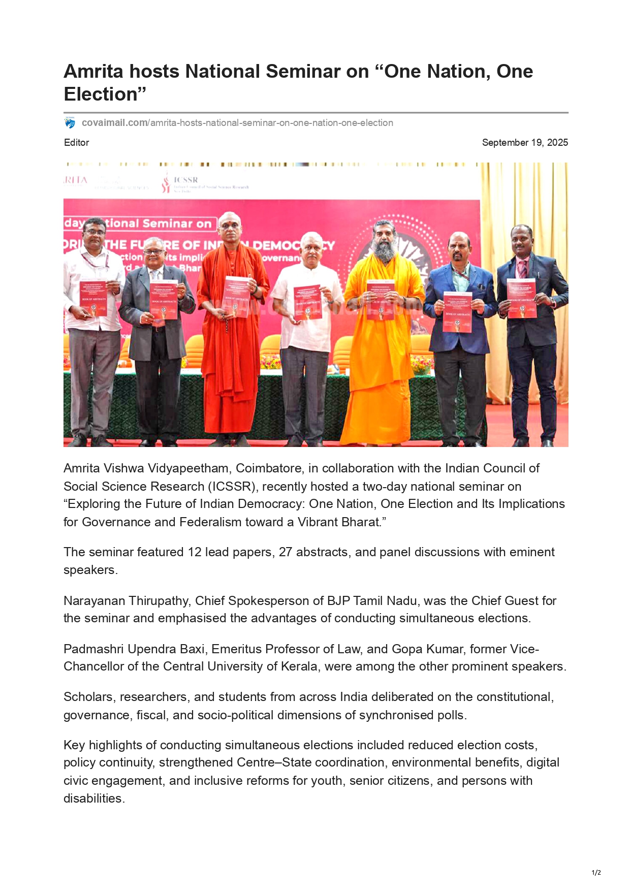 Focus: Evaluating how ONOE interfaces with India’s federal character and governance systems.