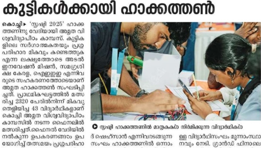 On September 14, 2025, at the Amrita Vishwa Vidyapeetham Kochi Campus, teams will showcase their projects in person and work on prototyping and building their solutions.