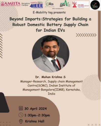 Dr. Mohan Krishna S, Research- manager, of Supply-Chain Management Centre in IIM, Bangalore AMRITA ALUMNUS |