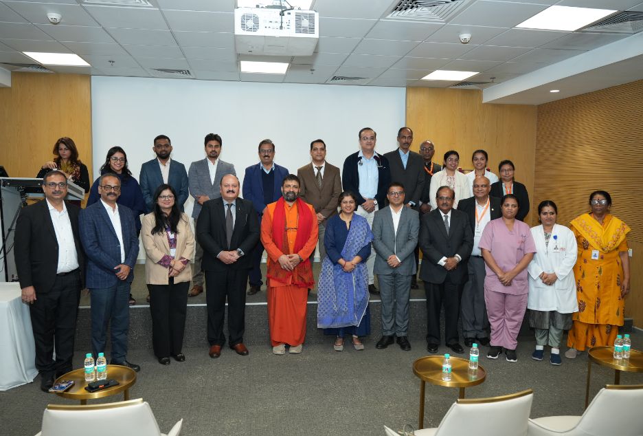 The following dignitaries attended the inauguration ceremony at Amrita Hospital, Faridabad: Swami Nijamritananda Puri, Administrative Director, Amrita Hospital – Faridabad, Dr. Sanjeev K. Singh, Medical Director, Amrita Hospital, Faridabad, Ms. Aruna Nayak, Managing Director, Getinge MedicalIndia, Mr. Rajiv Mathur, CEO, KEDMAN Skilling Private Limited, and Dr. Hemant Sharma, Senior Consultant, Neonatology, Amrita Hospital, Faridabad.