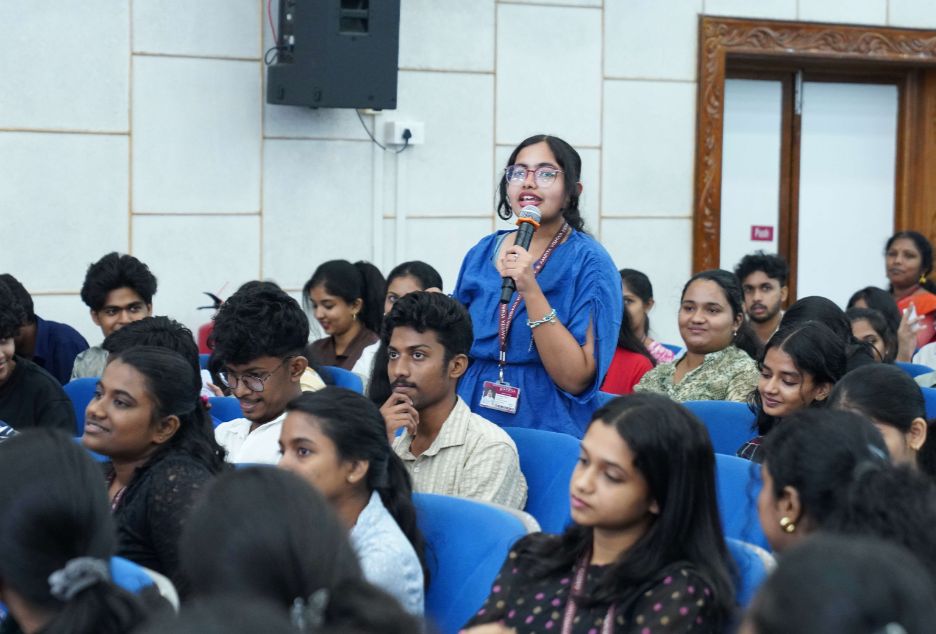 Motivational session II began, titled Unleash Your Best Self, led by corporate mentor and motivational trainer Mr. Vishnu Lona Jacob. In an engaging and interactive session, he guided students through essential principles of personal development, confidence building, and professional readiness. He encouraged participants to identify their inner strengths, challenge self-limiting beliefs, and adopt a proactive mindset.
