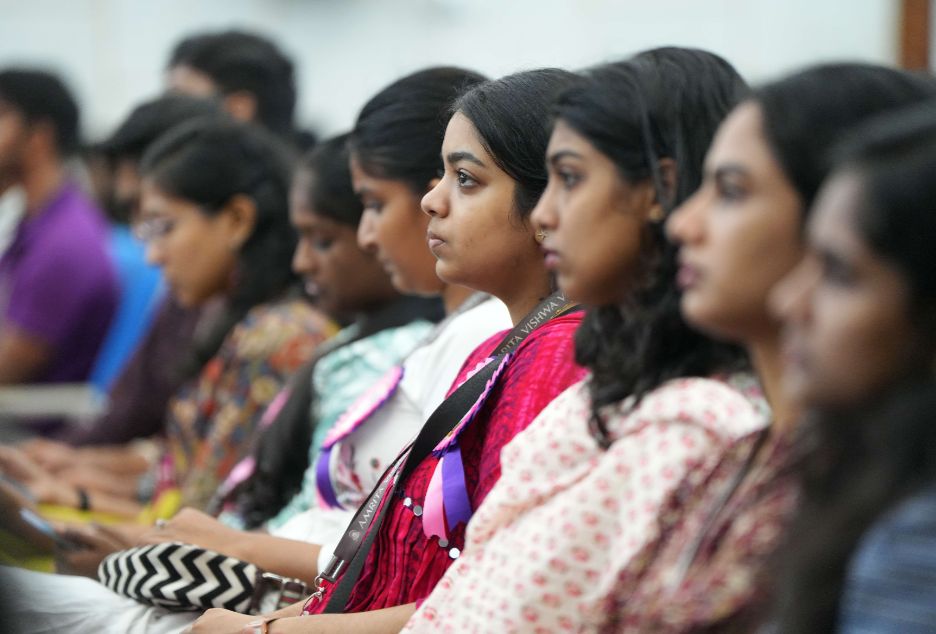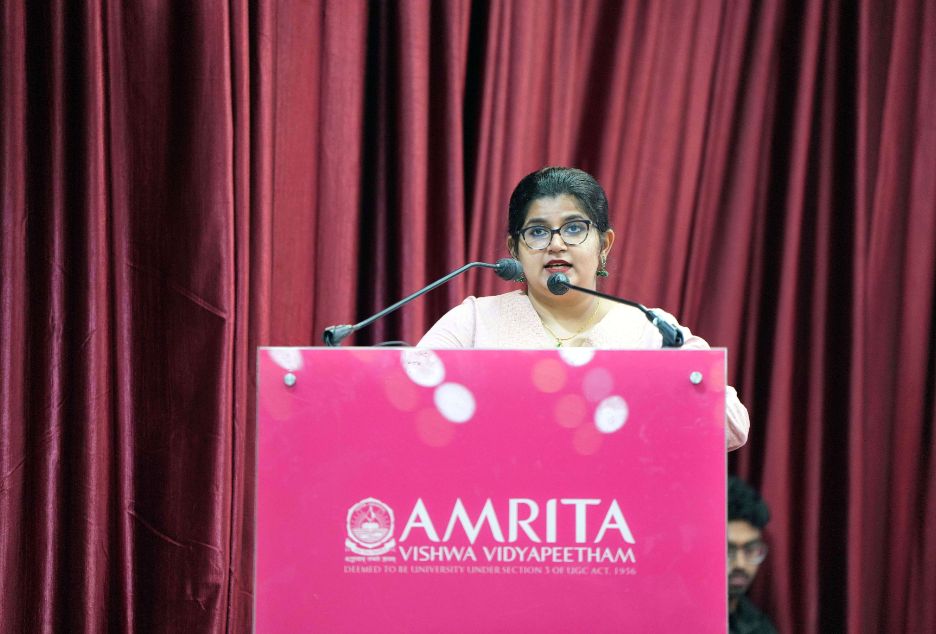 The morning session concluded with an enriching motivational talk by Br. Sivanandan D S, Assistant Professor, School of Spiritual and Cultural Studies, Amrita Vishwa Vidyapeetham, Amritapuri Campus. His talk was titled “Embrace the Beginner: Your Shortcut to Mastery in a Distracted World.” He encouraged students to develop mindfulness, humility, and focus as essential tools for navigating both academic and professional challenges. He emphasized that true mastery begins with embracing the mindset of a learner – one who is open to growth, willing to persevere, and capable of rising above distractions.