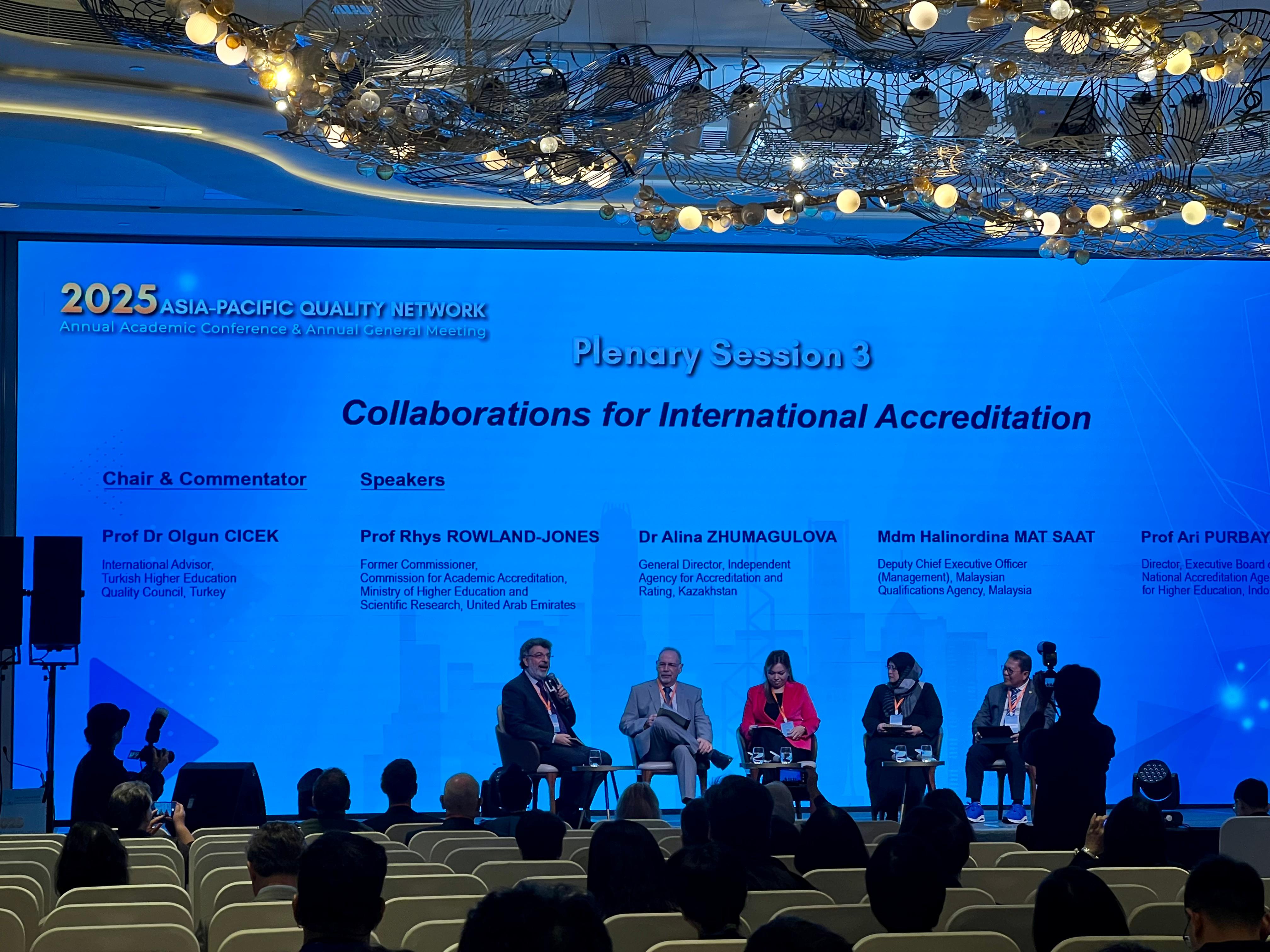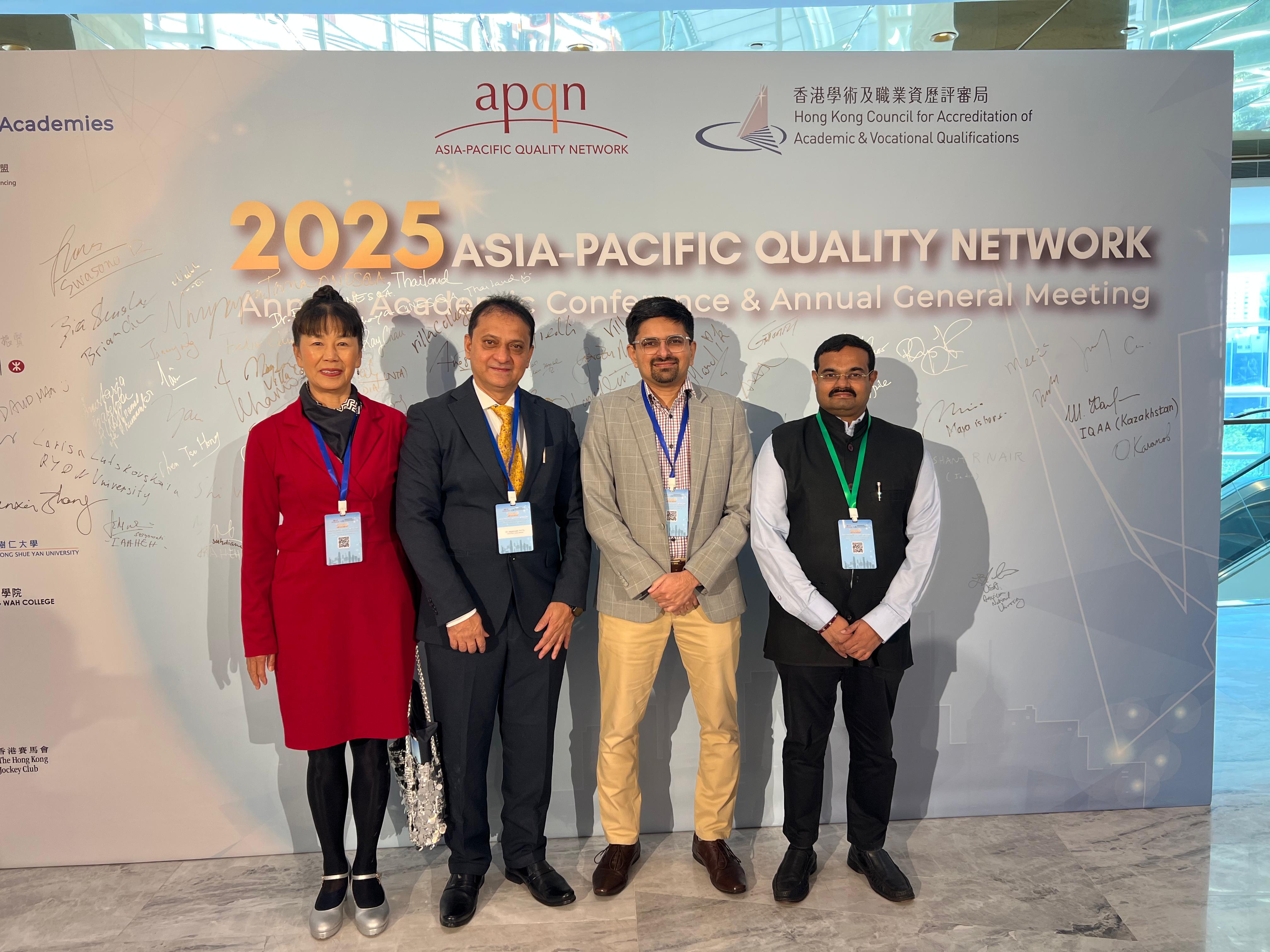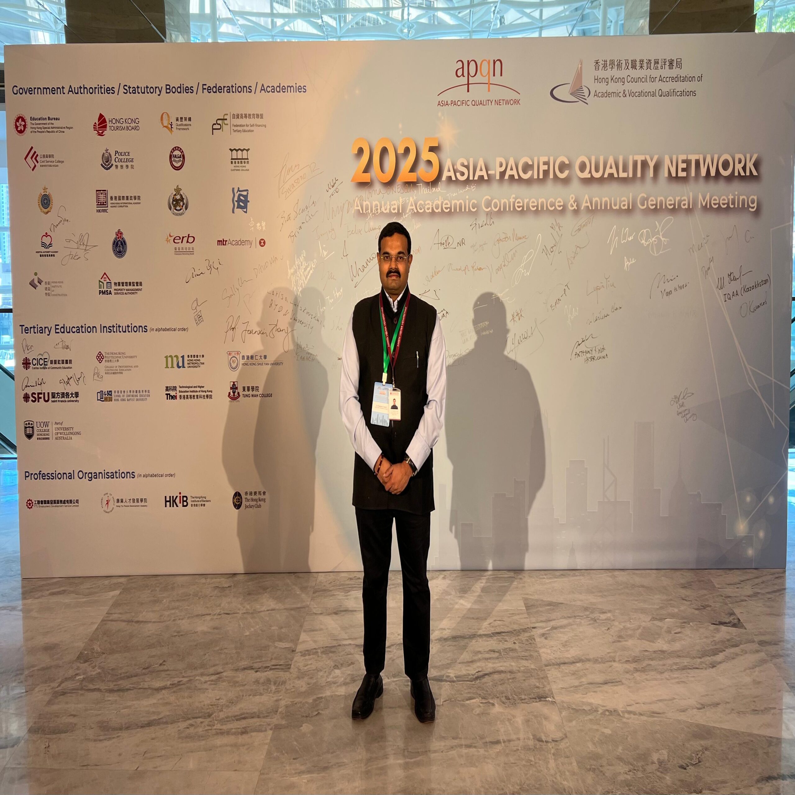 Other speakers from this session included Prof. Will W K Ma, Tung Wah College, Hong Kong; Prof. Michael Joseph Dino, Our Lady of Fatima University, Philippines; and Dr. Allen Zhang, Technological and Higher Education Institute of Hong Kong with best practices highlighted such as integrating interprofessional education (IPE) into the curriculum, Mixed reality (MR) technology as pedagogy etc. This session was moderated by Dr. Daniel Lee, Registrar, Academic Accreditation and Assessment, Hong Kong Council for Accreditation of Academic and Vocational Qualifications (HKCAAVQ), which is the co-host of APQN 2025. During the conference, Dr. Prashant also interacted with Dr. Jagannath Patil, Adviser, NAAC; Dr. Galina Motova, President, APQN; and Dr. Jianxin Zhang, Past President, APQN.