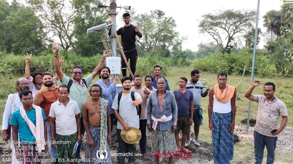 The Rural Technology Team at AMMACHI Labs, Amrita Vishwa Vidyapeetham, has successfully completed the installation of a new pole-based design of the Amrita Elephant Watch — an AI-enabled elephant detection system — in Gobardhanpur and Tantichira villages, Odisha. The installation marks a significant milestone in the ongoing WADI Project, following the earlier successful deployment in Brahmaniapal village.