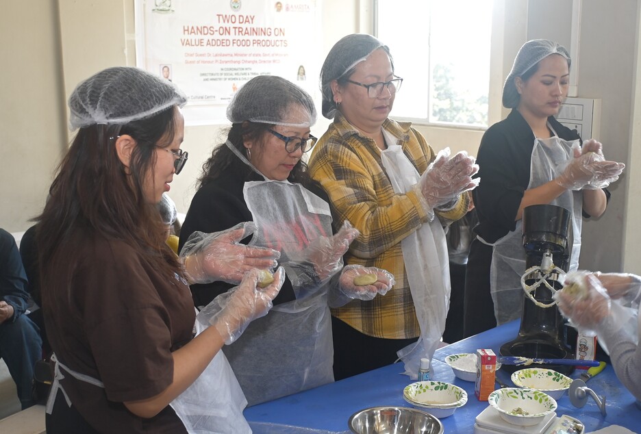 The workshop brought together participants from various localities across the city and focused on practical food processing techniques. Trainees were guided in preparing products such as moringa cookies, orange jam, and ginger-perilla bites. The ginger-perilla bites, an Ayurvedic digestive snack, were specially formulated by nutritionists at Amrita College of Ayurveda, Kerala, keeping in mind local Mizo dietary preferences. The products were developed through systematic formulation, nutrient analysis, optimization, and shelf-stability testing before being introduced for training.