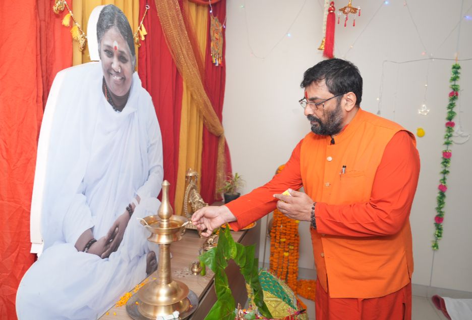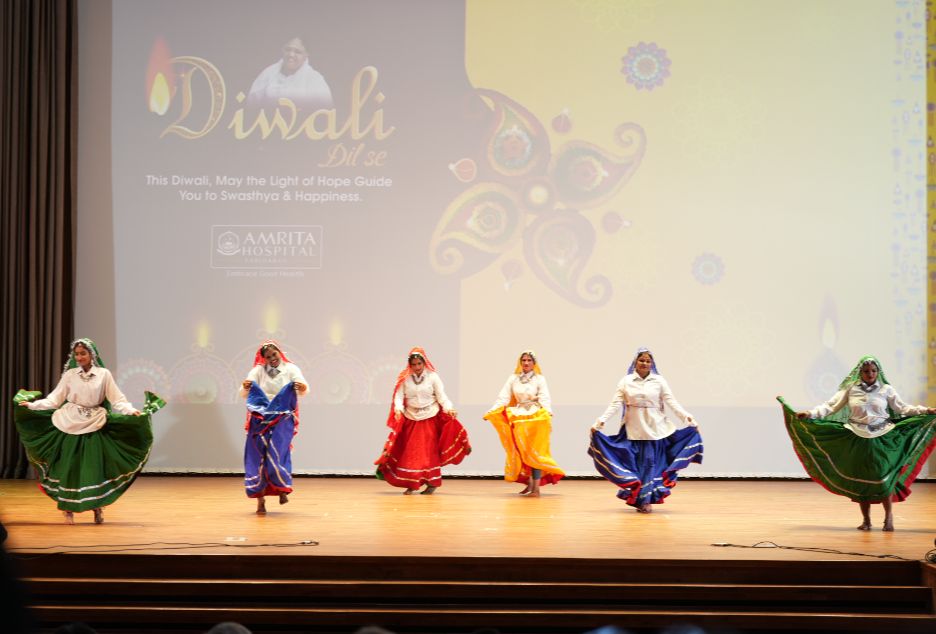 The evening commenced with a Lamp Lighting Ceremony and Prayer, symbolizing the eternal triumph of light over darkness. In diwali message, Swami Nijamritananda Puri, Administrative Director, Amrita Hospital, Faridabad, inspired everyone to nurture the inner light of compassion and spread happiness through selfless service and kindness.