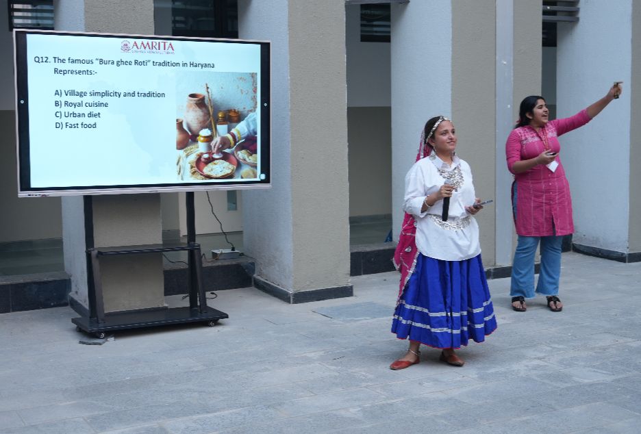 A soulful Haryanvi group song was played by a first-year student in the beginning of the cultural showcase. It was then followed by a quiz on the history and culture of Haryana to test the knowledge of the audience and arouse interest and excitement.