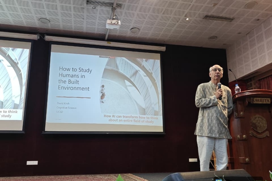 The Amrita School of Social and Behavioural Sciences hosted an insightful talk by David Kirsh, Professor and former Chair of the Department of Cognitive Science at UC San Diego. The session explored how built environments influence human attention, emotion, and behaviour, raising compelling questions about why certain spaces help us feel calm and focused while others leave us tense or mentally drained.