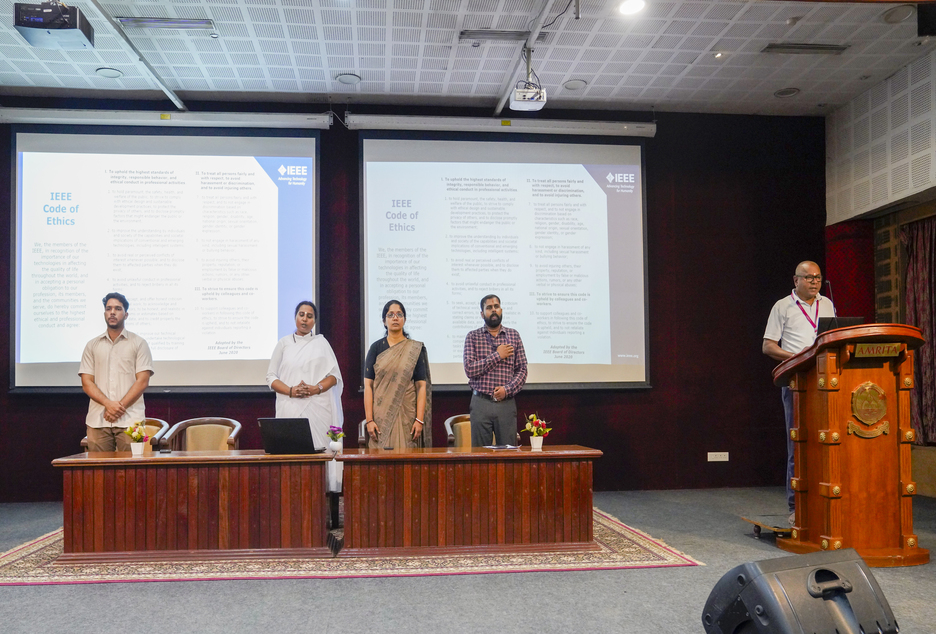 The IEEE Annual General Body Meeting (AGM) 2026 of the IEEE Student Branch, Amrita Vishwa Vidyapeetham, Amritapuri Campus, was successfully held on January 28, 2026, at the Amriteshwari Hall, Amrita School of Engineering. The event brought together new and existing IEEE members and marked an important milestone for the student branch. The AGM was led by the newly elected office bearers for the year 2026, with Neeraj Krishnan serving as Chair, Prasannahariveeresh J R as Vice Chair, and Sreeraj R. Nair as Secretary. Dr. Sakthiprasad K M continued in his role as the IEEE Student Branch Counsellor, while Dr. Rajesh Kannan Megalingam served as the Student Branch Advisor. The event was graced by Dr. Remya Ajay as the Chief Guest, and Dr. Gayathri Narayanan was felicitated during the program.