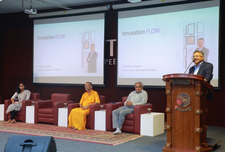 Dr. Balakrishnan Shankar, Dean of the School of Engineering; Brahmachari Achyuthamrita Chaitanya, Principal of the Amrita School of Spiritual and Cultural Studies; and Dr. S.N. Jyothi, Associate Dean of the Department of Engineering, were also present at the inauguration.”