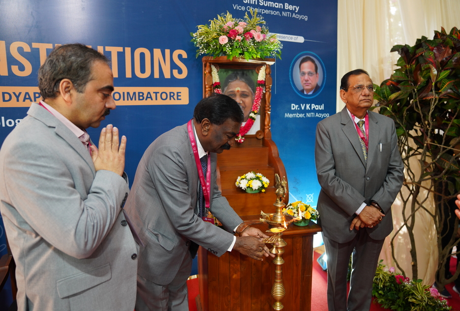 The 2-day workshop to be held January 8-9, 2026, commenced with the traditional lamp lighting ceremony by Dr. V. K. Paul, Hon’ble Member, NITI Aayog, and Prof. Dr. S. Vincent, Member Secretary, Tamil Nadu State Council for Science and Technology (TNSCST).