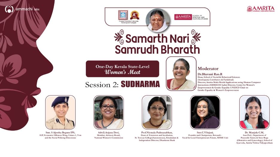 Dr. Bhavani Rao, UNESCO Chair for Women’s Empowerment and Gender Equality and Dean of the Amrita School of Social and Behavioural Sciences, moderated a thought-provoking panel discussion today at Amrita Vishwa Vidyapeetham, Amritapuri Campus, as part of Samarth Nari Samrudh Bharat.