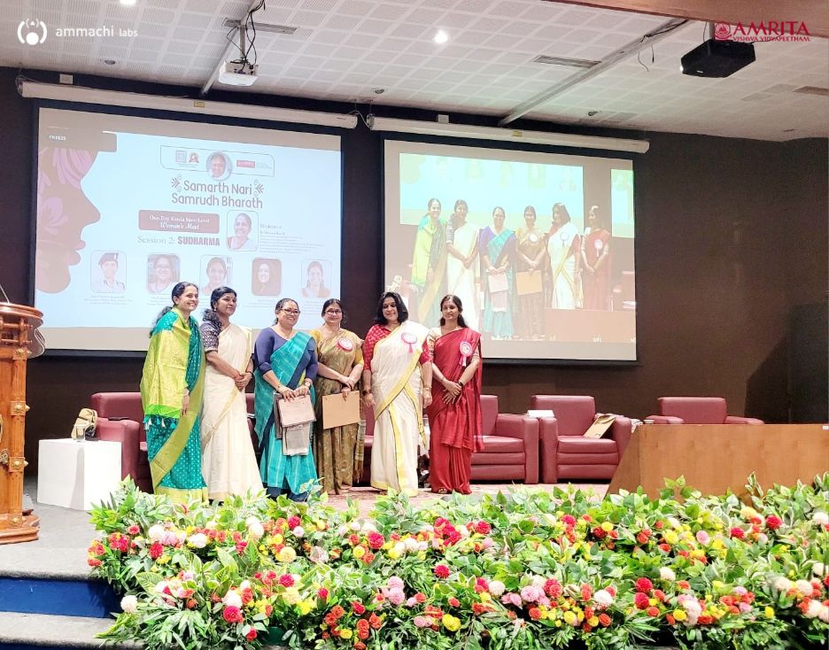 The panel featured diverse perspectives from academia, healthcare, entrepreneurship, finance, and public policy. The speakers included Dr. Manjula C. M., Assistant Professor, Department of Prasoothi Tantra & Stree Roga, Amrita School of Ayurveda; Smt. C. V. Sajani, Entrepreneur, Politician, and Founder of Bersaath Branding and Entertainments Co.; Prof. Nirmala Padmanabhan, Dean of Extension & Incubation, St. Teresa’s College, and Independent Director at Dhanlaxmi Bank; and Adv. G. Anjana Devi, Member of the Advisory Board, National Women’s Commission.