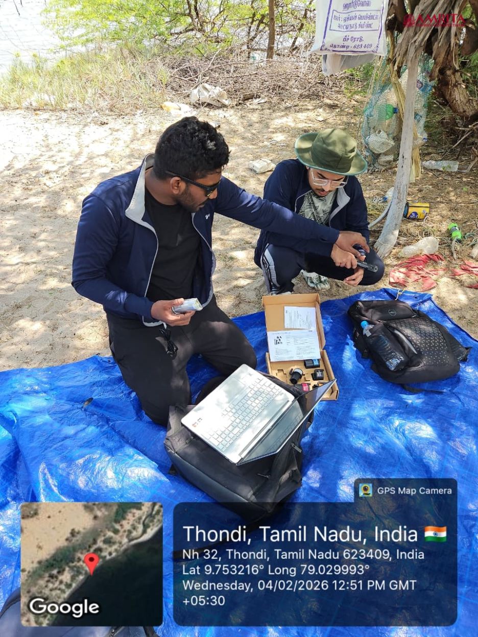 From February 4 to 9, the Ocean Farming and Rural Technology teams of AMMACHI Labs carried out a series of intensive field activities across the coastal regions of Thondi, Soliyakudi, Nambuthalai, and Olaikuda in Rameswaram. The initiative focused on advancing seagrass restoration alongside marine environmental monitoring, reinforcing efforts toward sustainable coastal ecosystem management.