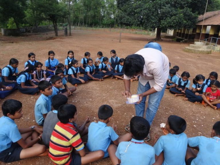 Students conducted classes for small children. In the tuition centers started by the ashram, they introduced tablet-based learning. When word got around, the number of children in the classes began to swell. In some places, student teams were invited to village schools and anganwadi centers to conduct interactive sessions.