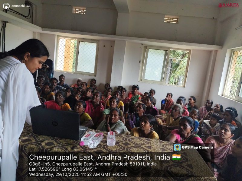 Following its resounding success in Tamil Nadu, researchers Mohan Kumar and Amritha Natarajan from Amrita University’s Center for Women’s Empowerment and Gender Equality (CWEGE) embarked on a multi-district awareness campaign across four coastal villages — Tantadi (Anakapalli District), Budagatlapalam (Srikakulam District), Vasalathippa, and Chirrayanam (Konaseema District).