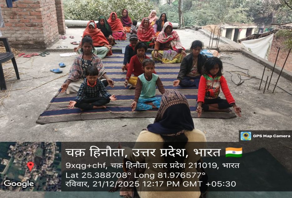 The programme was observed in Sarai (Uttar Pradesh) and in the villages of Kanti, Bheeri, Mosaria, Ratanpur, and Thariyal. A total of 96 women and children actively participated in the session, creating a collective space for inner balance and emotional well-being within their communities.