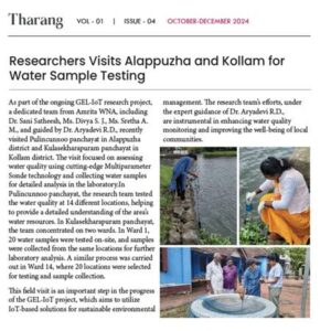 As part of the ongoing GEL-IoT research project, a dedicated scientific team from Amrita WNA, including Dr. Sani Satheesh, Ms. Divya S. J., and Ms. Sretha A. M., under the expert guidance of Dr. Aryadevi R.D., conducted field visits to Pulincunnoo Panchayat in Alappuzha district and Kulasekharapuram Panchayat in Kollam district.