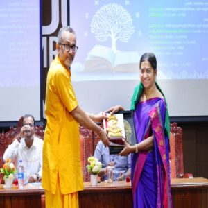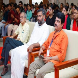 The highlight of the event was the Chief Guest Address and Special Talk by Dr. R. Vanniarajan, Member, Managing Committee, Vivekananda Kendra, Kanyakumari, on the inspiring topic “Swami Vivekananda’s message to the youth – ‘Be and Make’.” His address deeply motivated students and faculty, emphasising character building, self-confidence, and purposeful living among the youth.