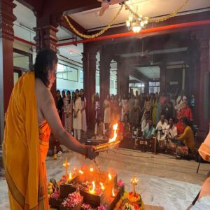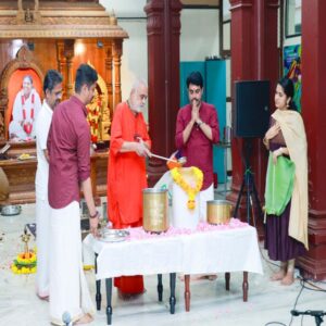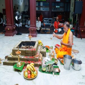 The program began at 6:00 AM with Dhanvantari Homam and Bhajans at the Bhajan Hall, invoking divine blessings. This was followed by Ghrita Sangrahana between 9:30 AM and 10:30 AM.