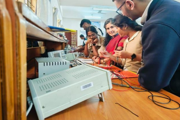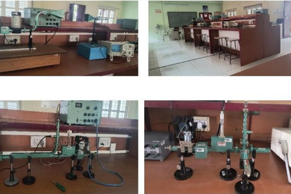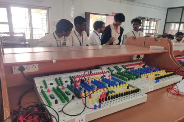 The lab familiarizes students with key electronic components such as resistors, capacitors, diodes, and transistors while developing circuit-building and troubleshooting skills. Through practical exercises, they gain deeper insights into component behaviours and circuit design, enhancingtheirproblem-solvingabilities.Inadditiontocomponent-levelanalysis, students are introduced to system-level design assessment, where they evaluate the integration of multiple circuits into functional electronic systems. This assessment helps them understand circuit interactions, optimize performance, and develop skills in designing comprehensive electronic solutions suitable for real-world applications. The lab is furnished with basic essential equipment such as Cathode Ray Oscilloscopes (CROs), DC power supplies, function generators, multimeters, voltmeters and ammeters and a variety of electronic components like Resistors, capacitors, inductors, diodes, transistors, and ICs which form the backbone of practical circuit design, enabling students to conduct experiment.