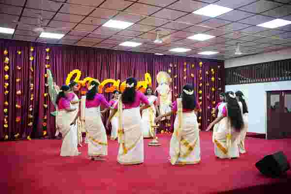 Onam message was delivered by Dr. Sabitha M., Principal, who wished everyone happiness along with prosperity and reminded about the importance of remembering the unprivileged people around us and extending possible helps to them during such festival season.