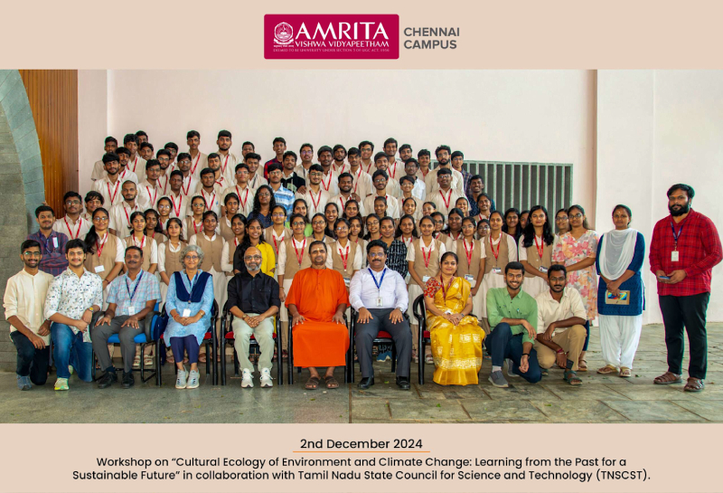 Group photo of participants at Amrita Vishwa Vidyapeetham’s 2024 workshop on cultural ecology and climate change, held in collaboration with Tamil Nadu State Council for Science and Technology.