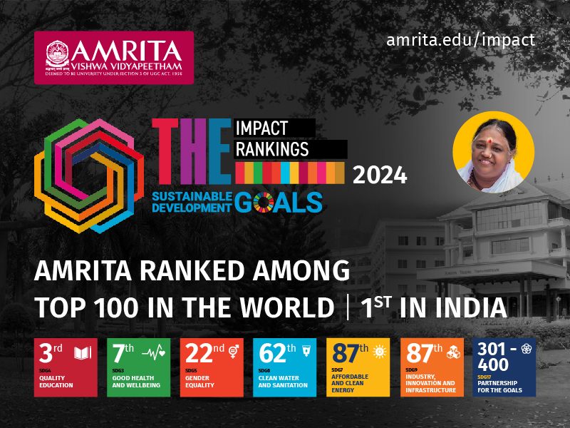 Amrita co-developed frameworks and guidelines on skill development and digital inclusion for underprivileged groups in 2024, shaping policies aligned with SDG 1 (No Poverty), SDG 4 (Quality Education), SDG 10 (Reduced Inequalities), and SDG 17 (Partnerships for the Goals). The university’s policy contributions were featured at the Times Higher Education Global Sustainable Development Congress in Bangkok (June 13-15, 2024), where Provost Dr. Maneesha V. Ramesh showcased Amrita’s comprehensive framework and case studies through the panel “Excellence in achieving the Sustainable Development Goals: Spotlight on India”.