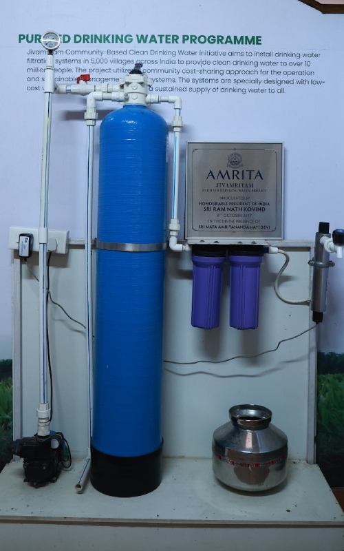 Developed by Amrita researchers, the Jivamritam multistage purification unit represents a scalable, community-based water filtration solution used both on campus and in rural outreach projects across India.