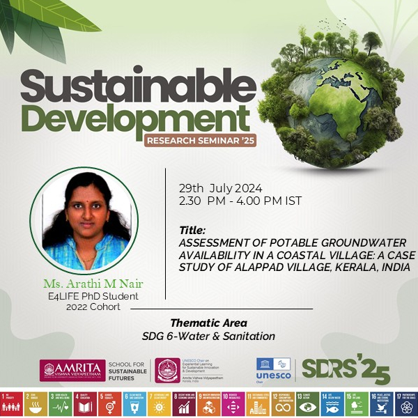 Amrita School for Sustainable Futures held a Sustainable Development Research Series by the PhD scholars presenting their research on innovative approaches and solutions in the area of water sustainability.