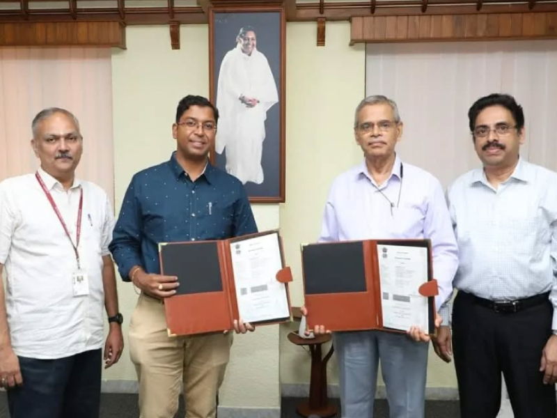 Officials from Vehicles Research and Development Establishment and Amrita University exchange agreements in a technology collaboration event.