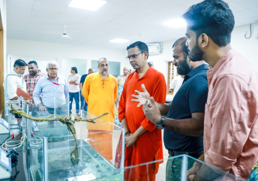 Researchers and visitors engaged in a demonstration at Amrita Vishwa Vidyapeetham’s integrated environmental research lab.