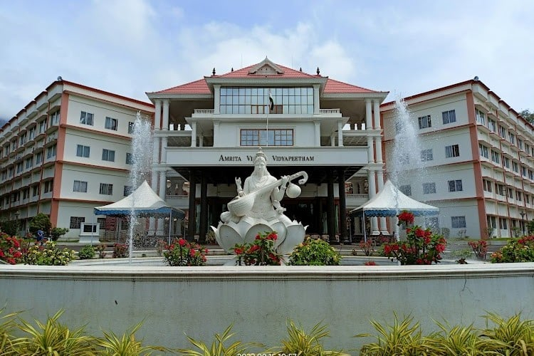 Amrita Vishwa Vidyapeetham Coimbatore campus main building with Saraswati statue and fountains