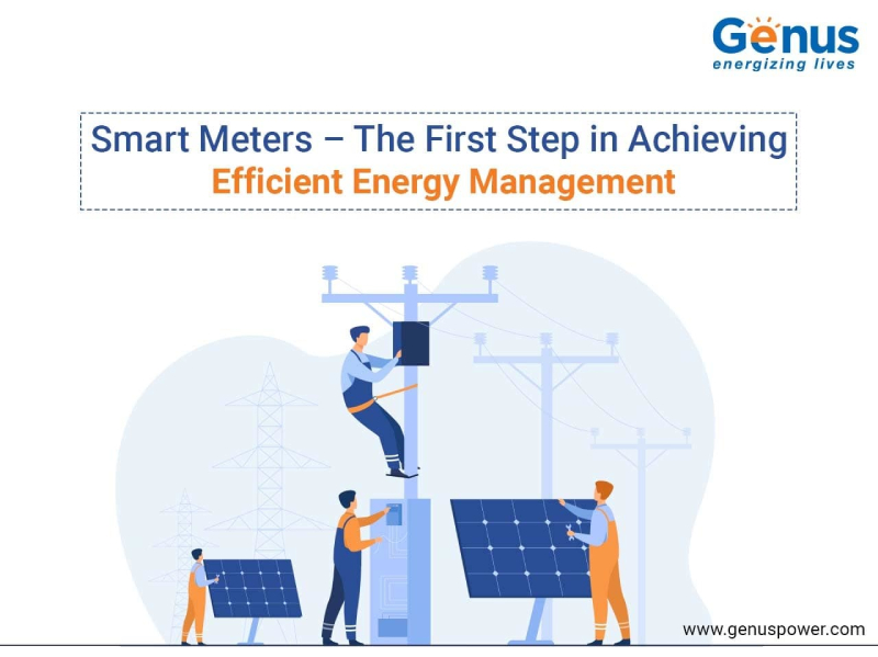 Illustration showing smart meters and solar panels as key components for efficient energy management.