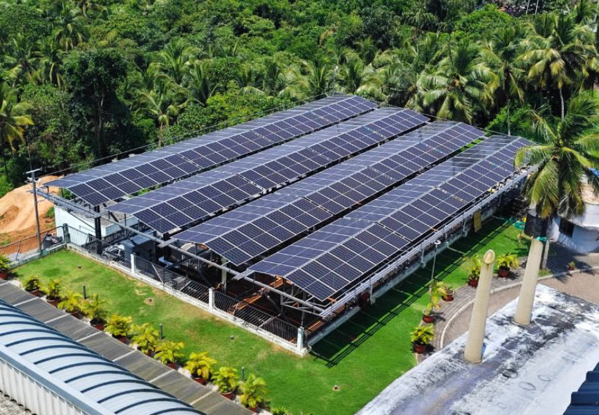 Solar panels installed on a rooftop at Amrita University campus generating renewable energy for higher energy efficiency.