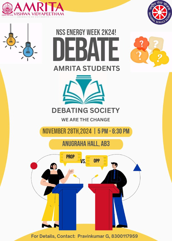 • Organized by Amrita Vishwa Vidyapeetham NSS Debating Society
