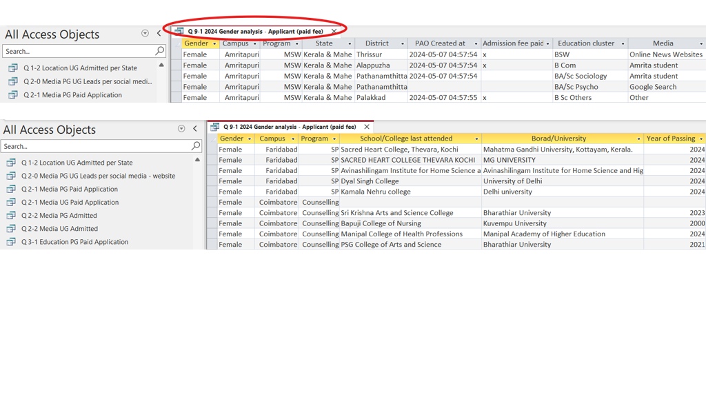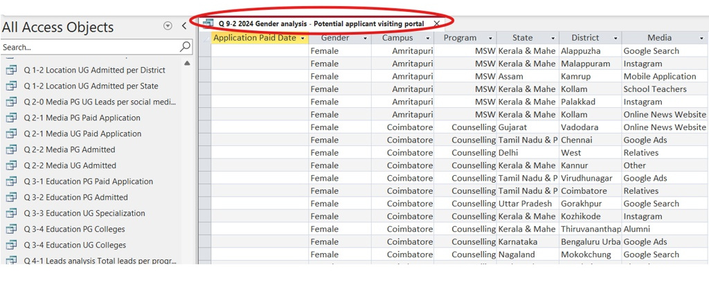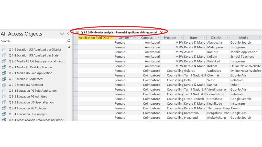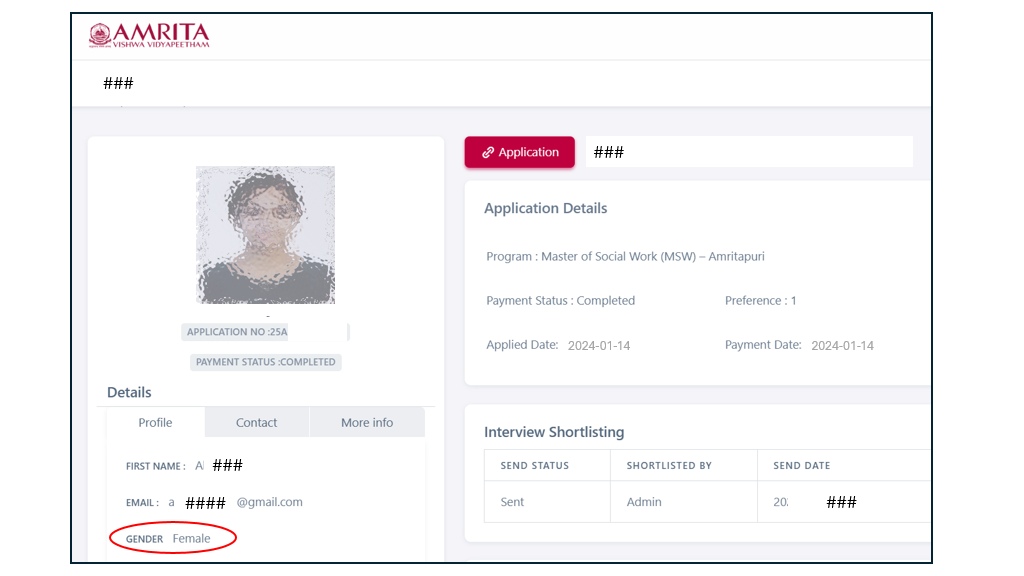 To track women’s applications, Amrita Vishwa Vidyapeetham uses the following method: