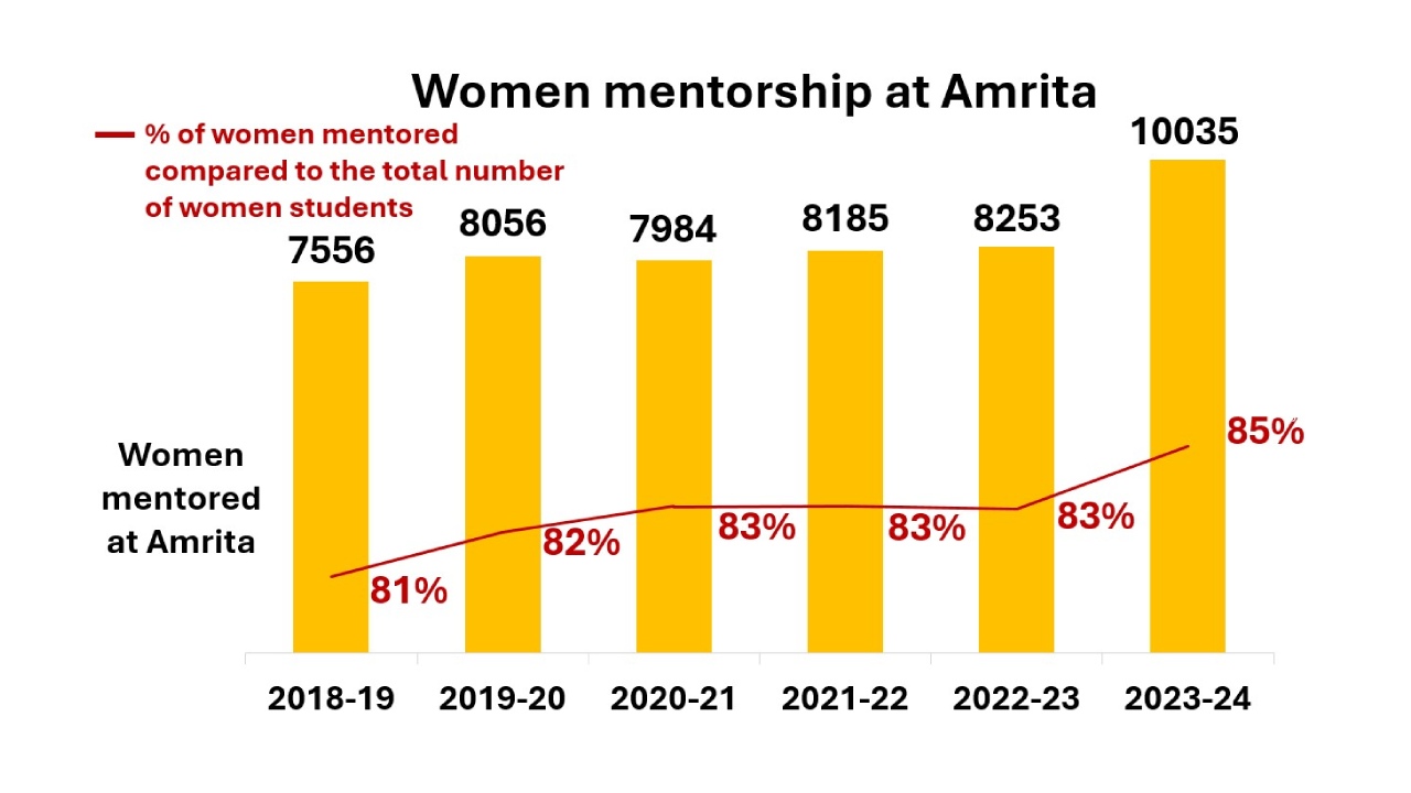 At Amrita Vishwa Vidyapeetham, we are proud to announce that 85% (+2 points compared to last year) of the women students are mentored.